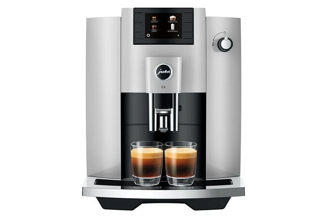 Met de JURA E6 zet u verschillende koffiespecialiteiten, zoals cappuccino en espresso. De E6 is een zeer compacte volautomatische espressomachine die met 1 druk op de knop cappuccino en 10 andere voorgeprogrammeerde specialiteiten kan bereiden uit hele of gemalen koffiebonen. De machine wordt heel eenvoudig aangestuurd vanaf het grote 2,8″ kleurendisplay aan de voorzijde.